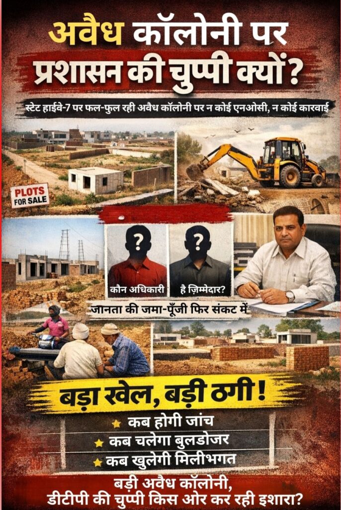 अब सवाल यह नहीं है कि कॉलोनी अवैध है या नहीं, सवाल यह है कि डीटीपी कब तक खामोश रहेगा — और क्या प्रशासन इस अवैध धंधे पर सख़्त वार करेगा या फिर यह चुप्पी किसी बड़े घोटाले की बुनियाद बन जाएगी।